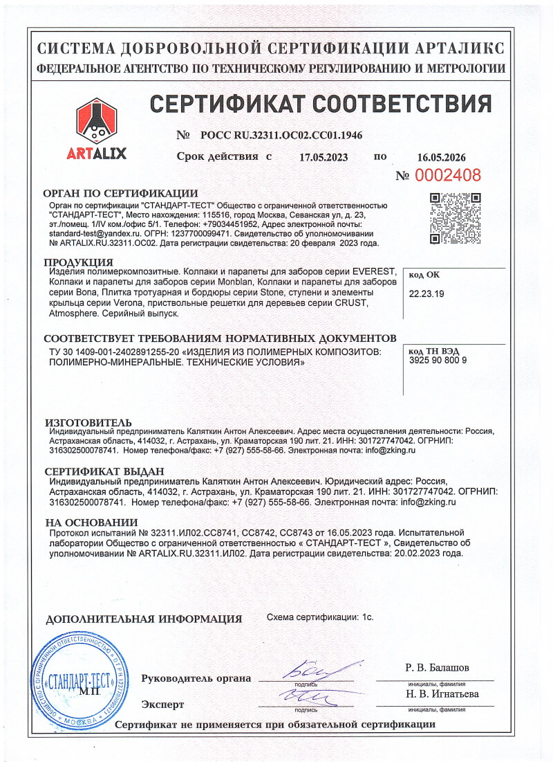 Сертификаты соответствия ZKING для Воскресенска